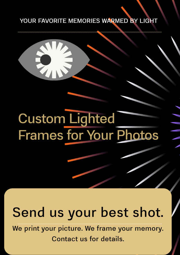 Backlit Photo Frames – A Brilliant Breakthrough in Art Display Custom-designed LED backlit photo frames that transform any image into a glowing centerpiece. Currently available in A4 and A3 sizes (more to come soon), these frames feature easy-to-swap prints and can even showcase your own artwork. Now accepting custom orders! Aluminum Prints: These prints infuse images directly onto aluminum sheets, resulting in vibrant colors and exceptional detail. The sleek, modern look complements any contemporary space. Acrylic Prints: Images are printed directly onto clear acrylic, providing a glossy finish that enhances color depth and clarity. This medium adds a sophisticated touch to any setting. Canvas Prints: High-quality images are printed on canvas material and stretched over a wooden frame, offering a traditional textured appearance often seen in art galleries, adding depth and character to your photos.” Backlit Photo Frames – A Brilliant Breakthrough in Art Display,